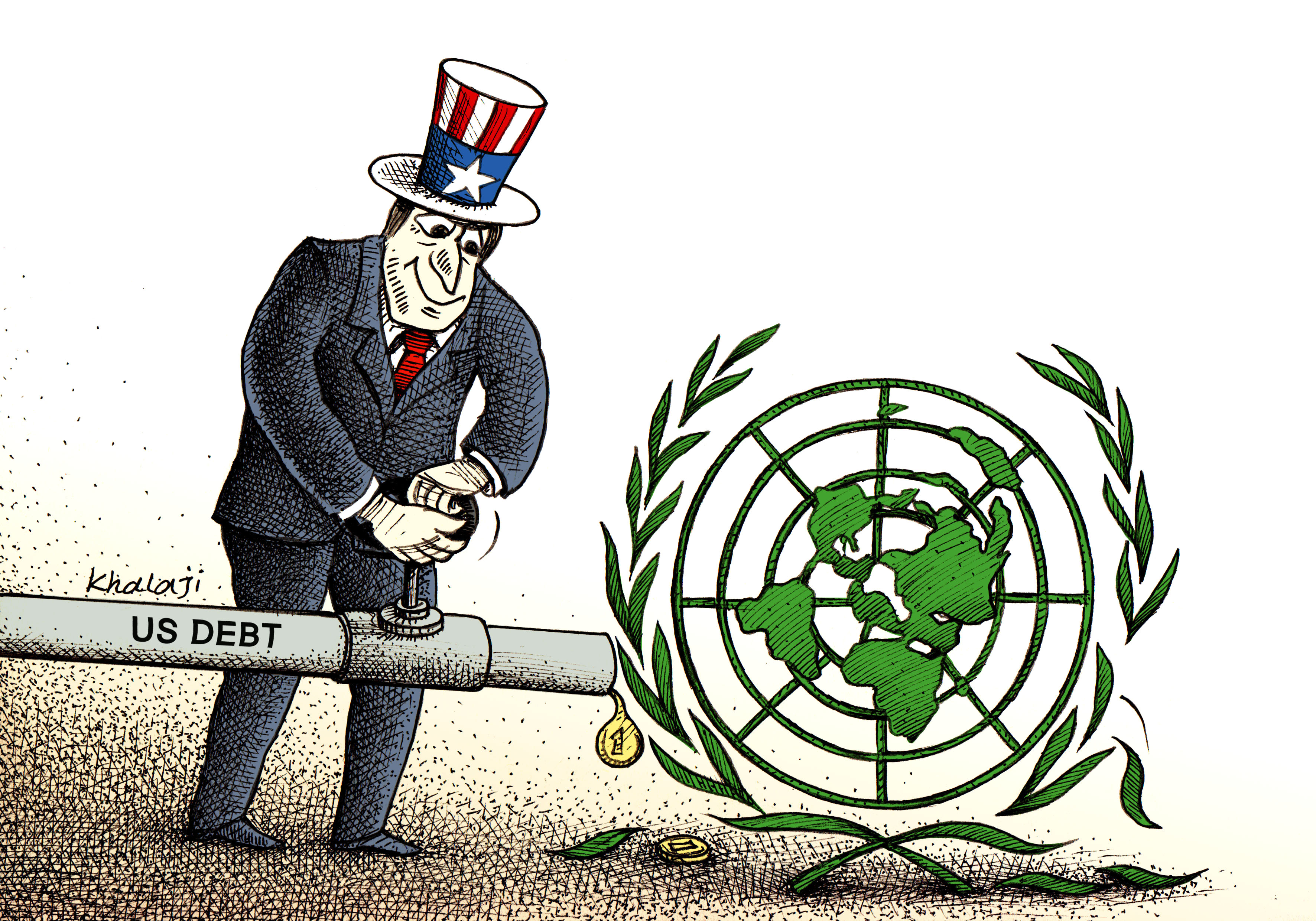 بدهی کلان و طولانیمدت آمریکا به سازمان ملل بدون شک به اعتبار بینالمللی آن آسیب میزند. اگرچه طبق «منشور سازمان ملل» در صورتی که بدهی آن به میزان معینی برسد، حق رأی خود در مجمع عمومی را از دست میدهد، اما این بند به ندرت علیه یک ابرقدرت اعمال شده است.